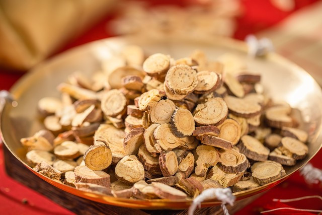 而当归拈痛汤药方的组成用药会多些,里面用了羌活、茵陈、防风、升麻、葛根、猪苓、泽泻、黄芩、苦参,加强燥湿、疏风、清热的力度,打通痹阻的经络,止痛消肿。白术、苍术帮忙健脾,把水湿运化出去,以免湿热再次淤堵关节。这个方剂里用到了很多除湿药物,药性偏苦燥,会伤气血阴津,于是方中用了人参、当归来补养气血。再用知母清热养阴,以防伤正气。炙甘草调和诸药。